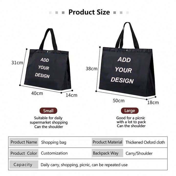 Sacs de shopping personnalisés de style décontracté et polyvalent, grande capacité, pliables, en polyester