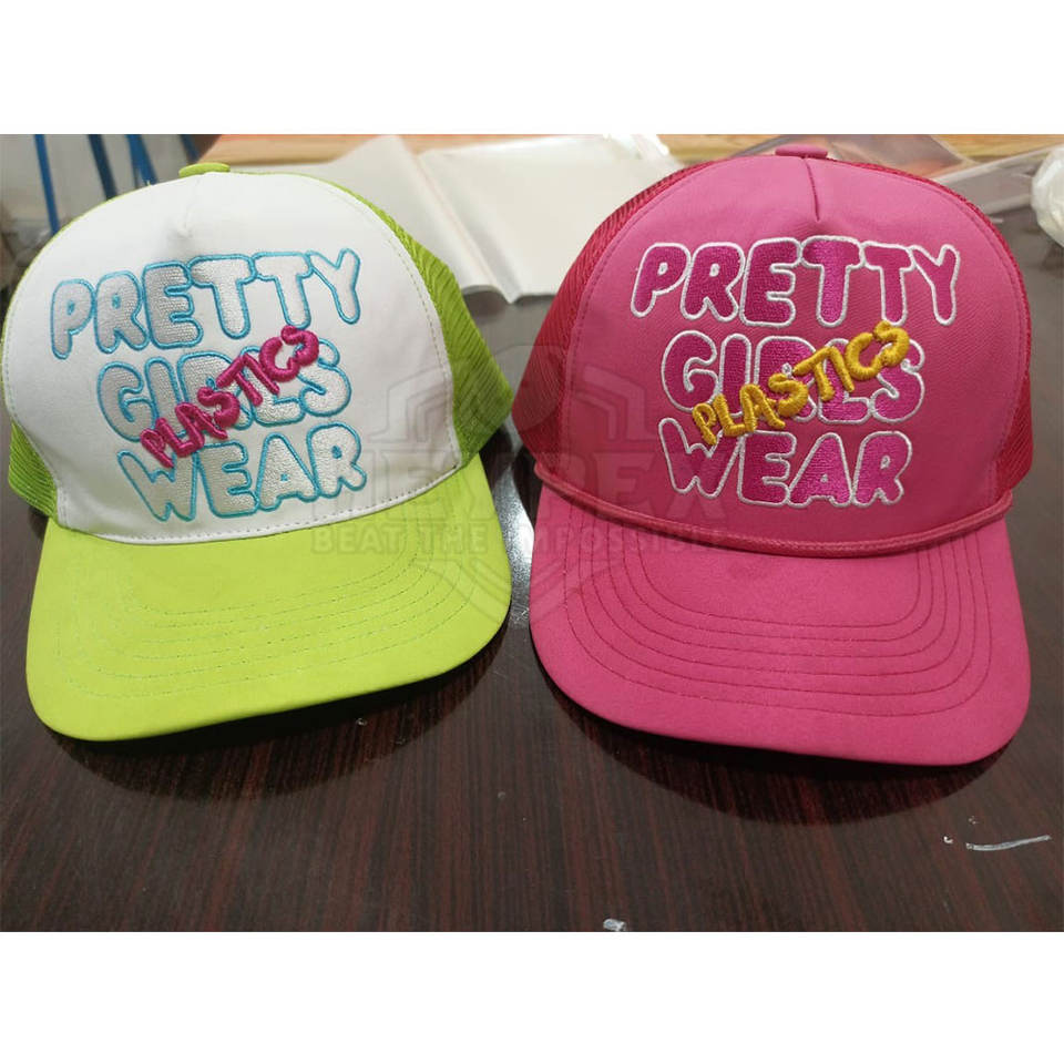 Logo position:brim/visor, front panel, Left panel, Right Panel, back curved part