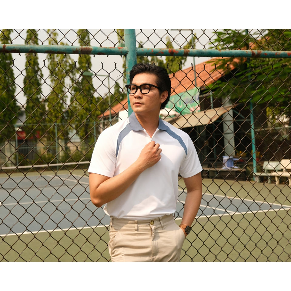 Product Name:Polo Shirt with Contrast Curved Panels Down Raglans Front