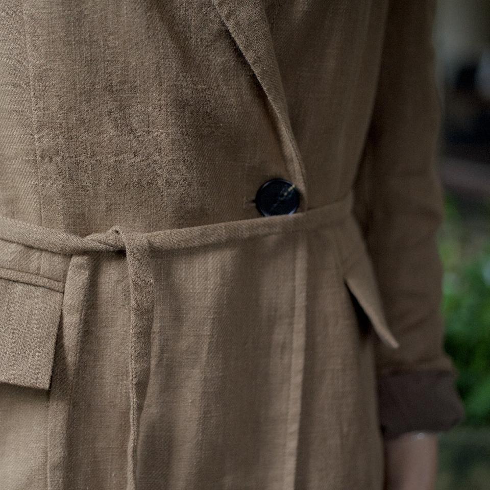 Casual Women's Thin Cotton Filled 100% Ramie Slouch Tie Jackets Woven Printed Plaid Pattern Detachable Front Flap Side Pockets