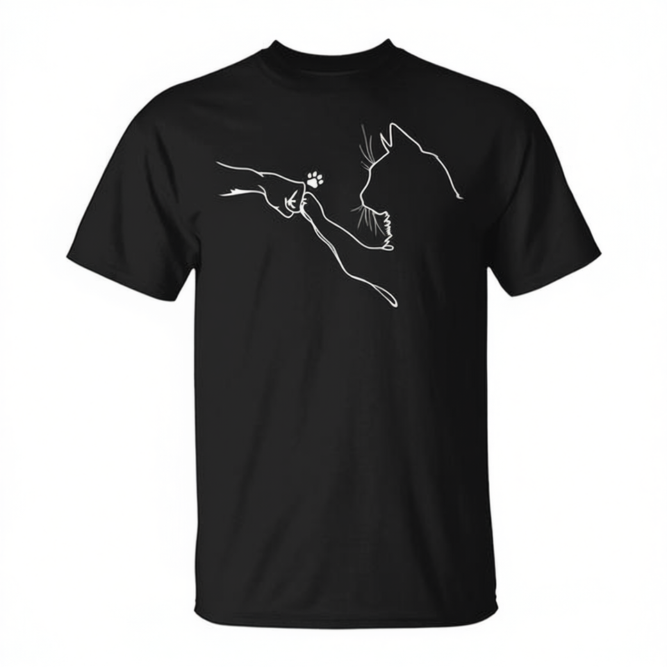 T-shirt Patte de Chat avec Motif Chat et Homme qui se Frappe la Main, Symbole d'Amitié
