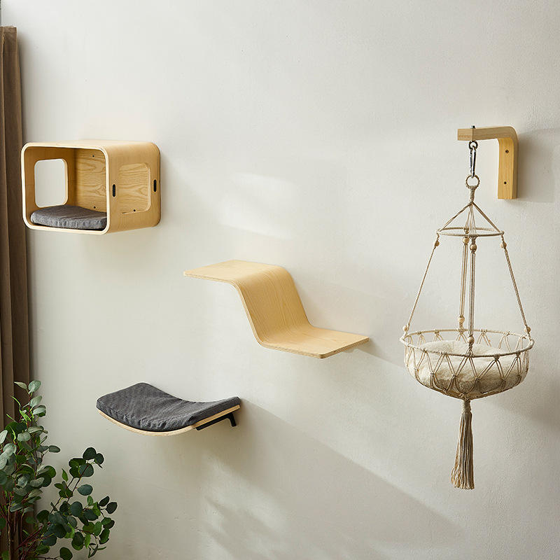 Structure d'escalade murale pour chat, plateforme de saut non en bois, poteau d'escalade, lit pour chat peu encombrant, griffoir intégré, jouet