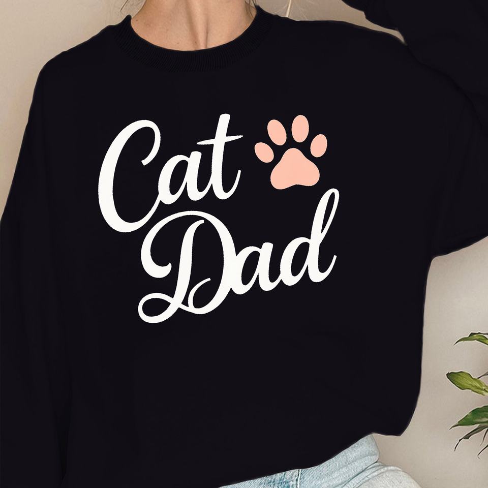 Casual Women's Sweatshirts 'Cat Dad with Paw Print' Design Knitted Fabric