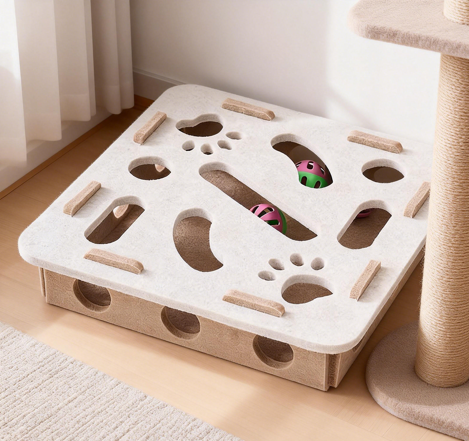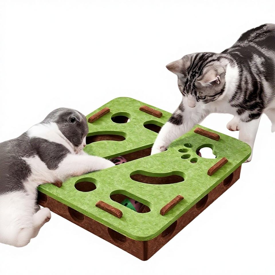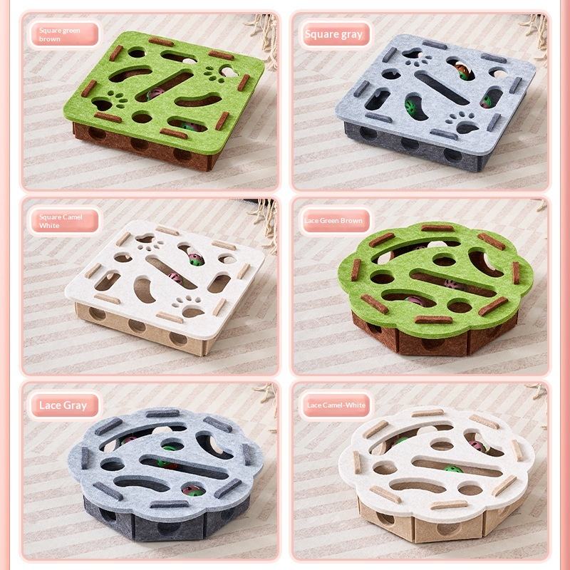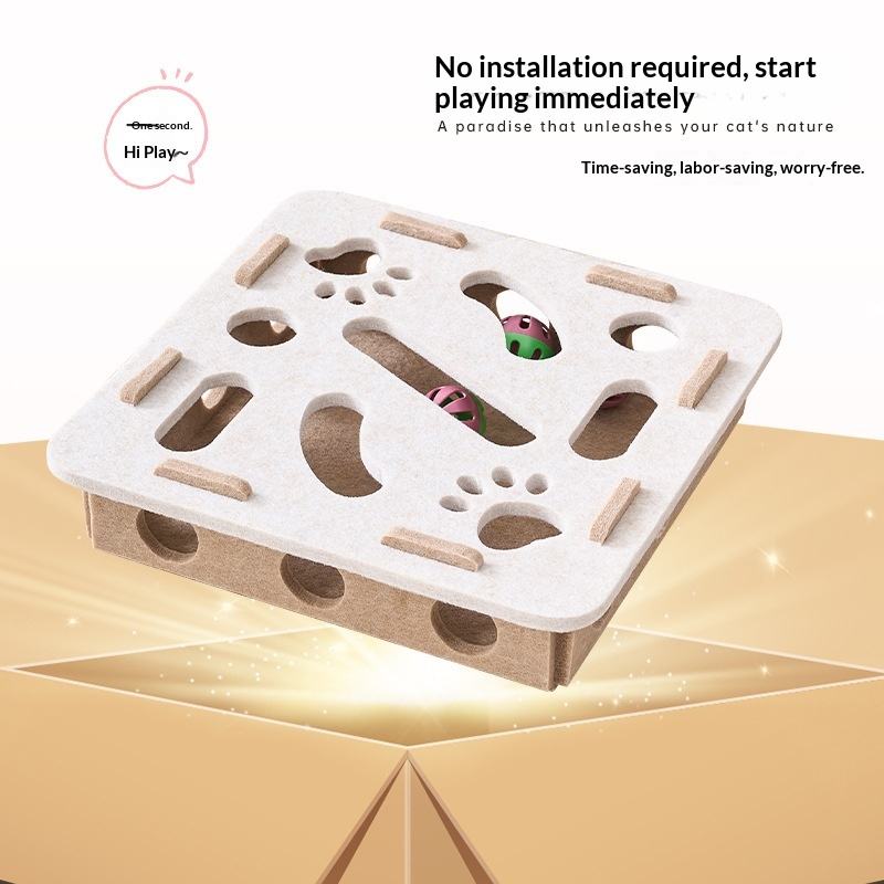 Boîte en feutre pour l'agrandissement du champ d'activité des chats avec labyrinthe et trou à creuser, et balle sonore ludique, l'outil ultime d'auto-amusement pour le divertissement félin