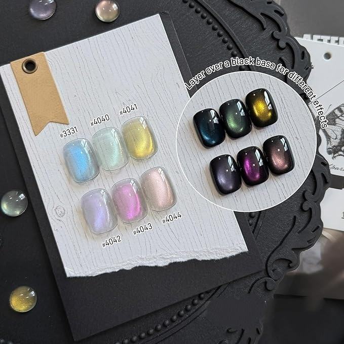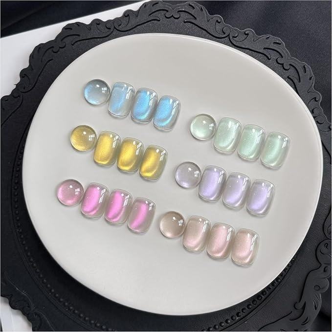Ensemble de vernis à ongles gel effet œil de chat, 6 couleurs, bleu pailleté, sirène, holographique, translucide, effet œil de chat avec aimant, gel UV à retirer par trempage