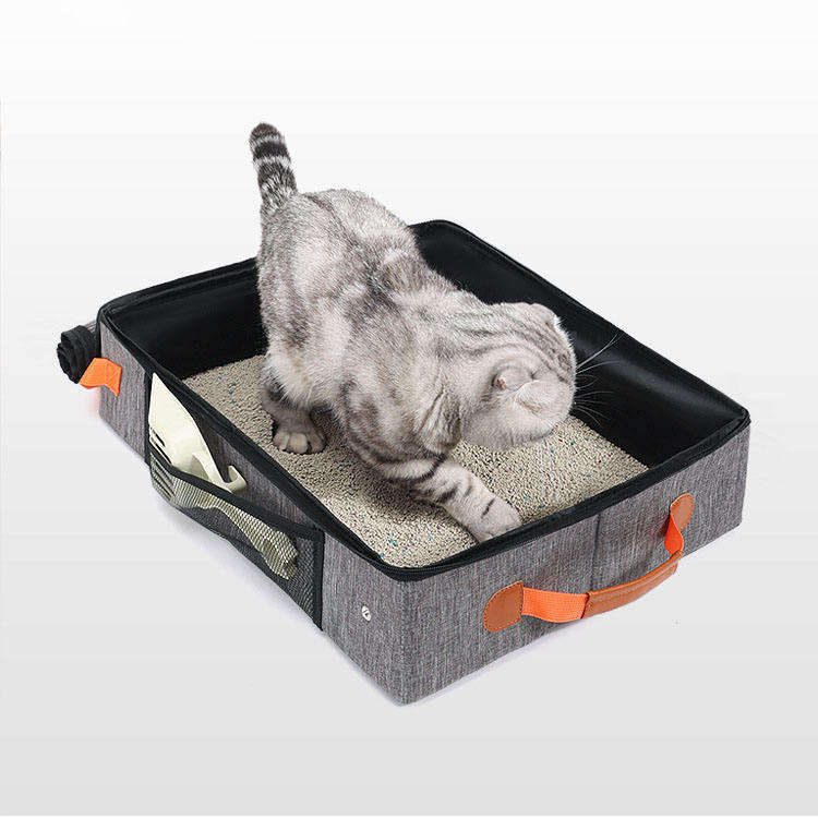 Bac à litière pliable rectangulaire en tissu gris avec poignée pour chats et chiens, fournitures pour animaux de compagnie