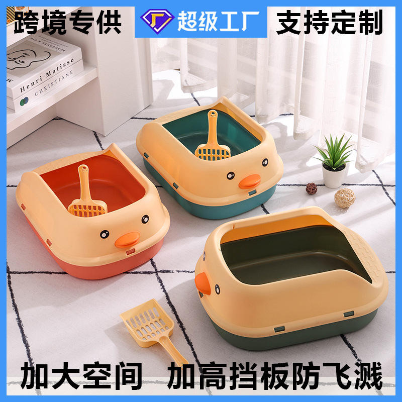 Bac à litière pour chat en forme de canard, semi-fermé, grande capacité, anti-éclaboussures pour chats