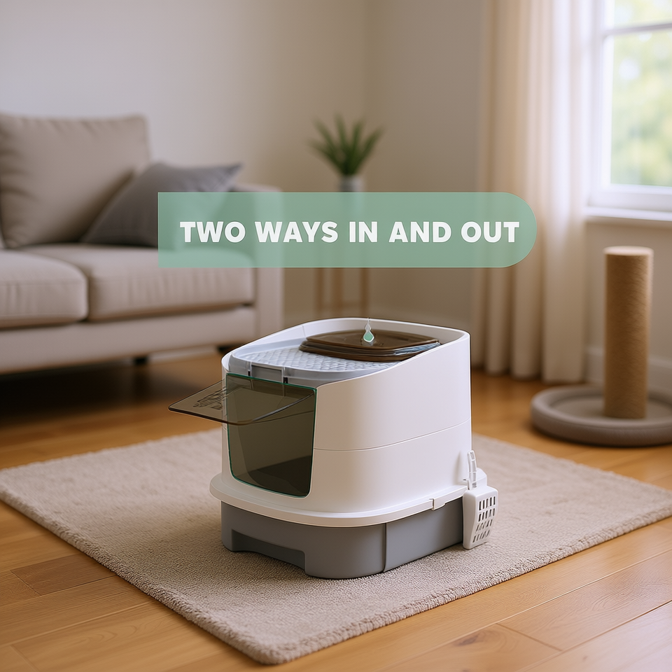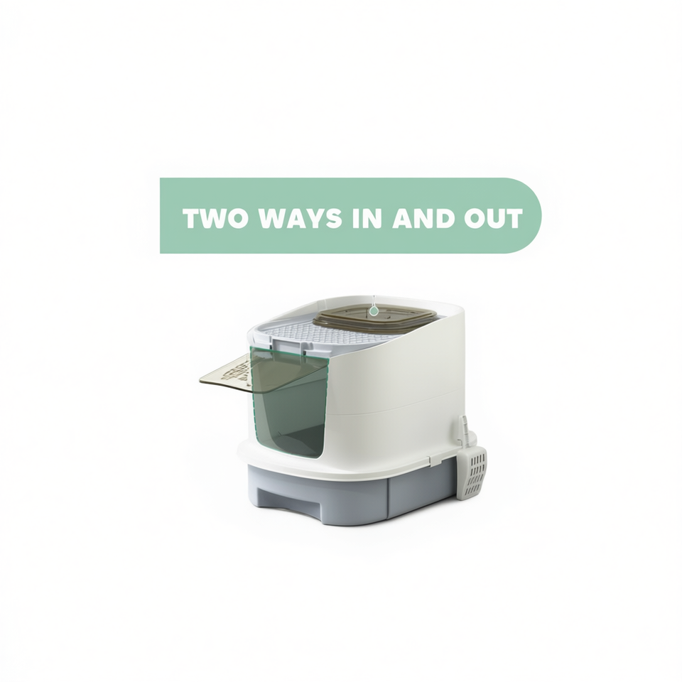 Enclos pour litière pour chat 65L, entrée et sortie bidirectionnelles, fonctionnement manuel, forme rectangulaire en plastique