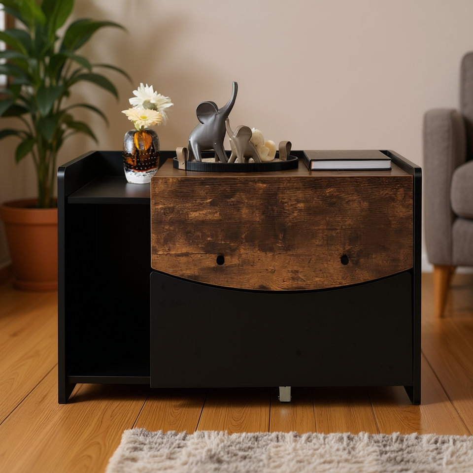 Enclos pour litière de chat avec tiroir coulissant, maison pour animaux de compagnie en bois moderne, meubles d'intérieur, taille moyenne