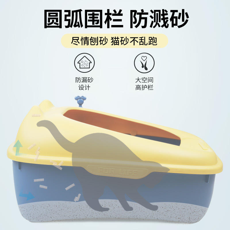Bac à litière pour chat extra large semi-fermé à bords hauts anti-éclaboussures en PP pour chat