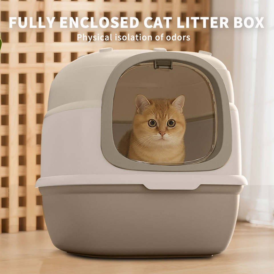 Bac à litière pour chat surdimensionné entièrement fermé en plastique PP carré anti-évasion, toilette pour chat désinfection stérilisation en gros