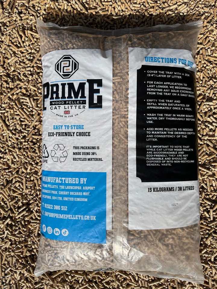 Litière pour chat en granulés de bois Prime Pellets, sans poussière, anti-odeurs, gris, formes variées, origine française, palet de 1 tonne