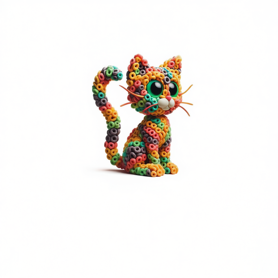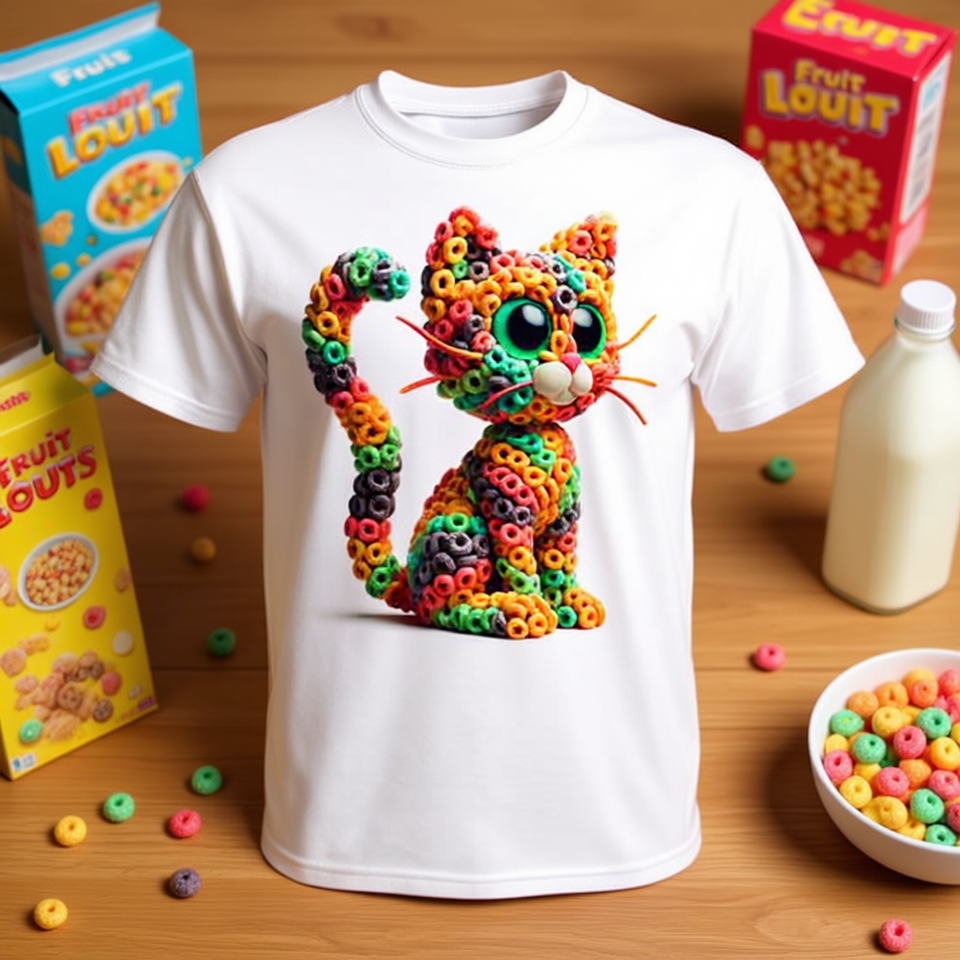 T-shirt unisexe à col rond et manches courtes, imprimé numériquement, motif Cat-Shaped Fruit Loops, pour usage promotionnel