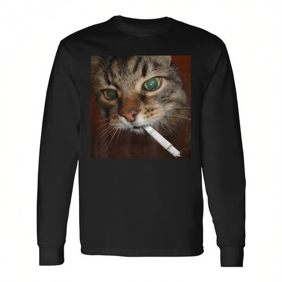 T-shirt à manches longues avec motif chat fumant une cigarette