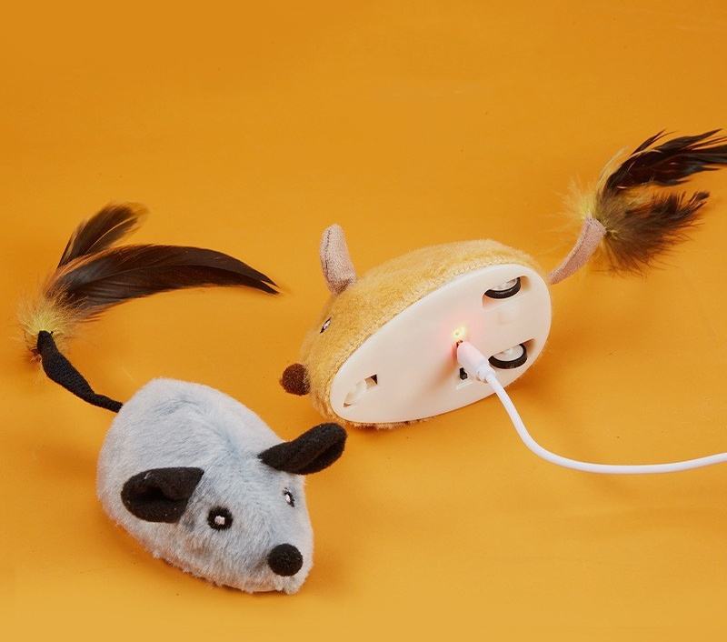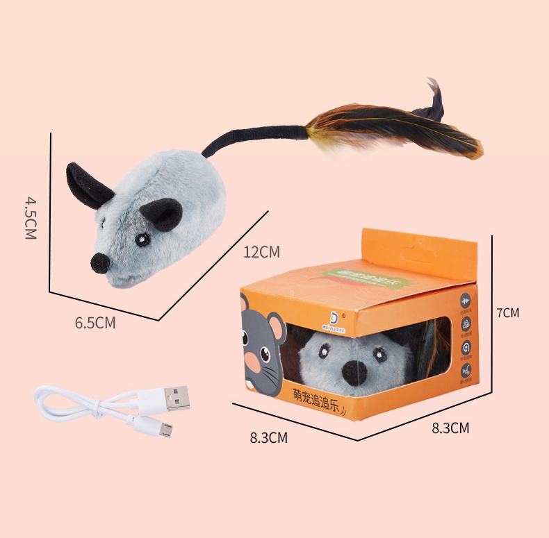 Chat Souris Peluche USB Jouets Interactif Automatique Déplacement Intelligent Souris Chat Chasse Jouet Plume