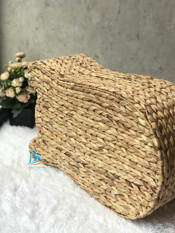 Panier de rangement en forme de chat en jacinthe d'eau pour animaux de compagnie