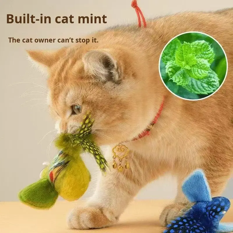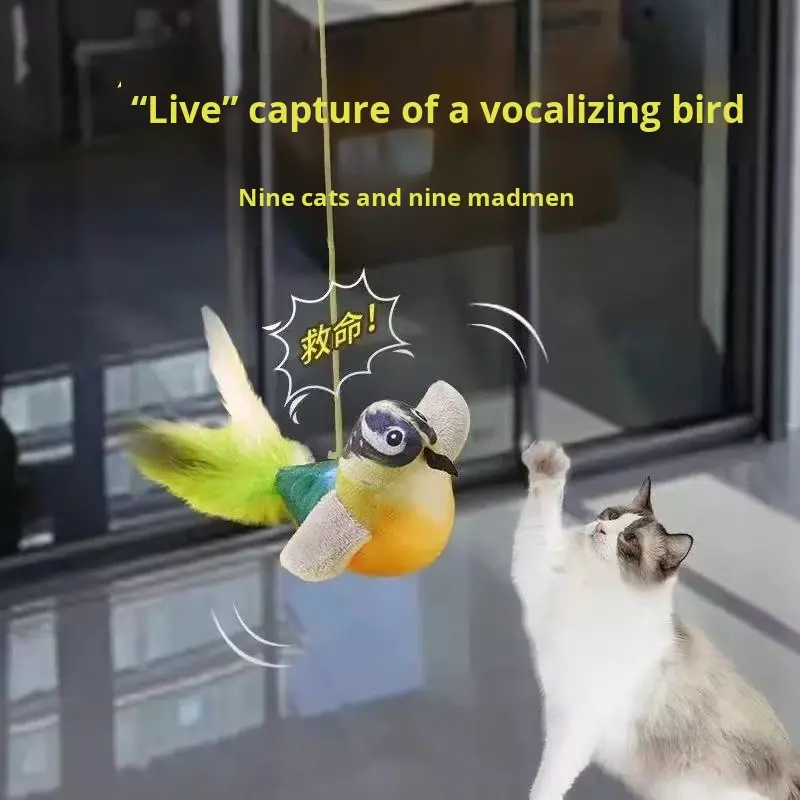 Jouet pour chat : Accessoire d'auto-entretenissement, simulation d'oiseau couinant, baguette de chat à plumes élastiques à suspendre à la porte, instrument vétérinaire
