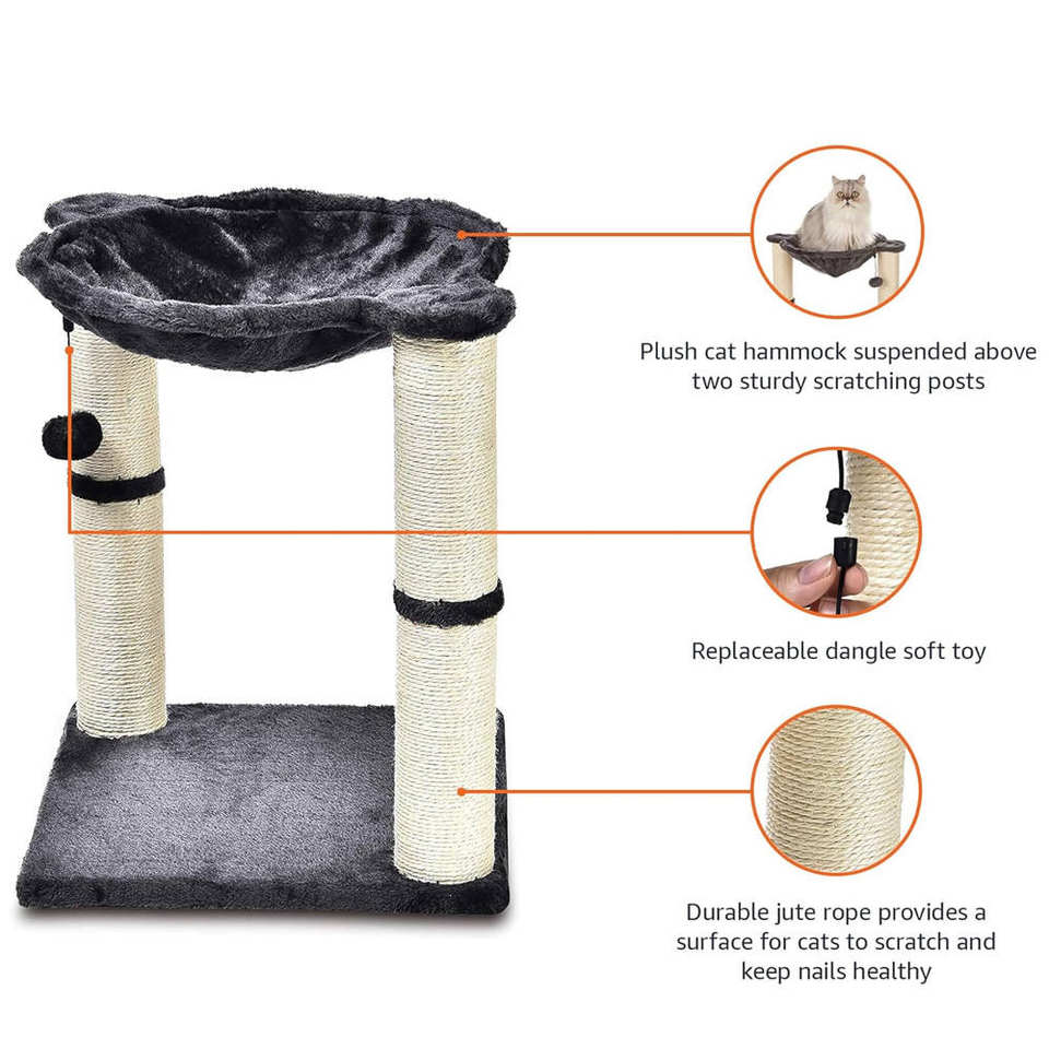 Arbre à chat avec perchoir supérieur en peluche, poteaux à gratter en sisal, structure d'escalade durable pour chat avec balle de jeu
