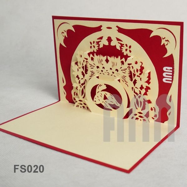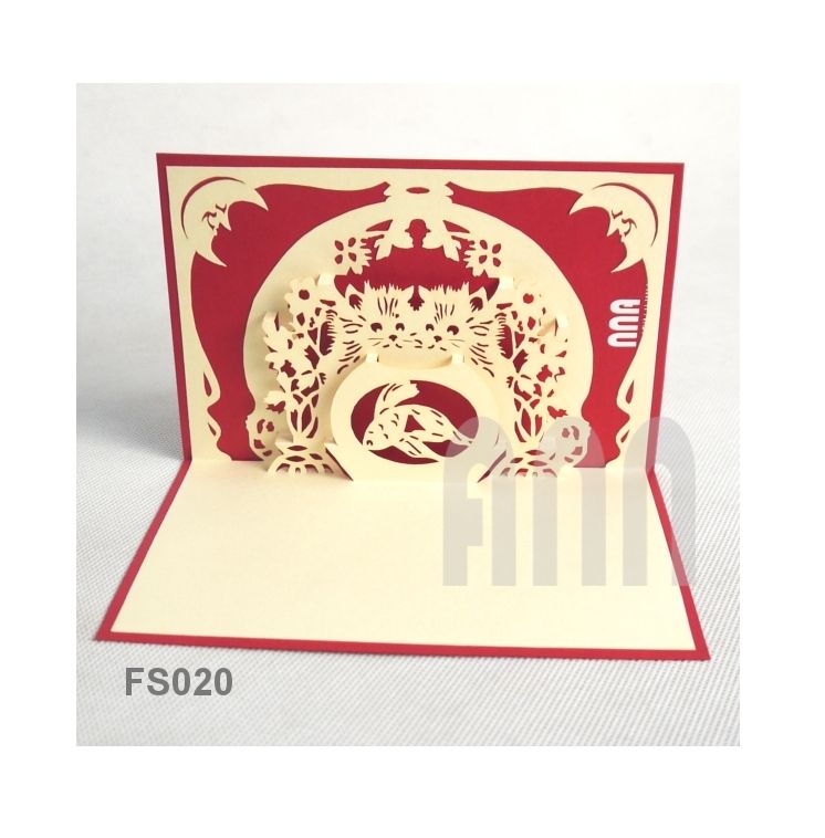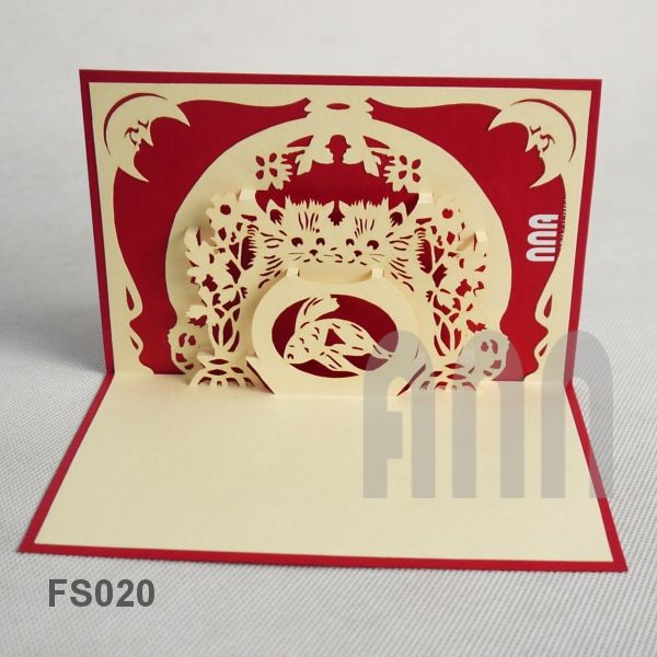 Carte de voeux pop-up 3D faite à la main pour chat poisson gravure laser idée cadeau animal unique souvenir de rentrée des classes