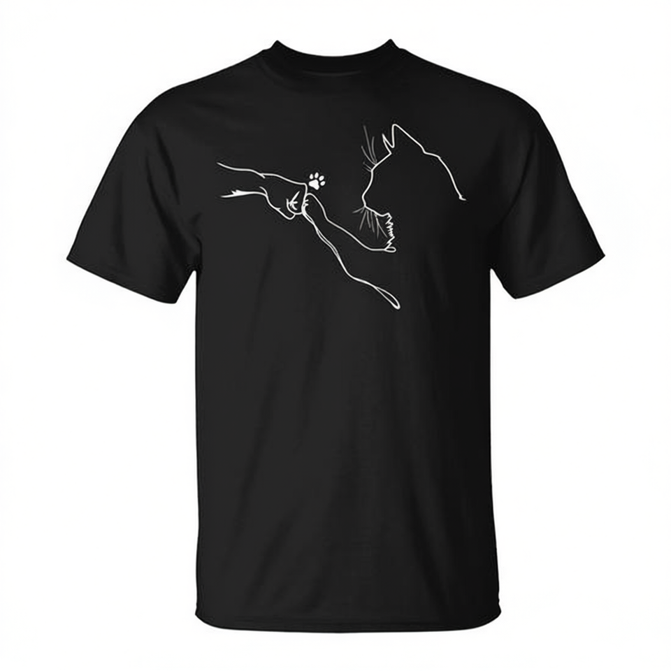 T-shirt promotionnel homme motif chat et main de l'amitié avec patte de chat en relief