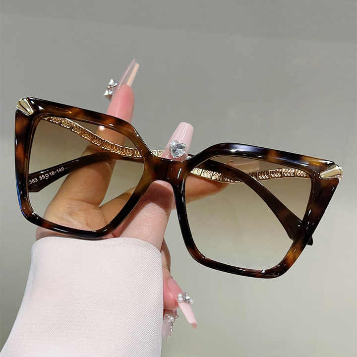 Lunettes de soleil surdimensionnées à effet œil de chat, avec verres dégradés, branches en chaîne de serpent, grandes lunettes de soleil