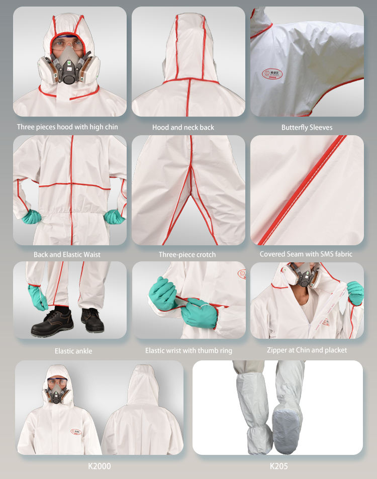 Catégorie Iii Type 5 6 Combinaisons jetables à protection complète contre les agents chimiques et infectieux