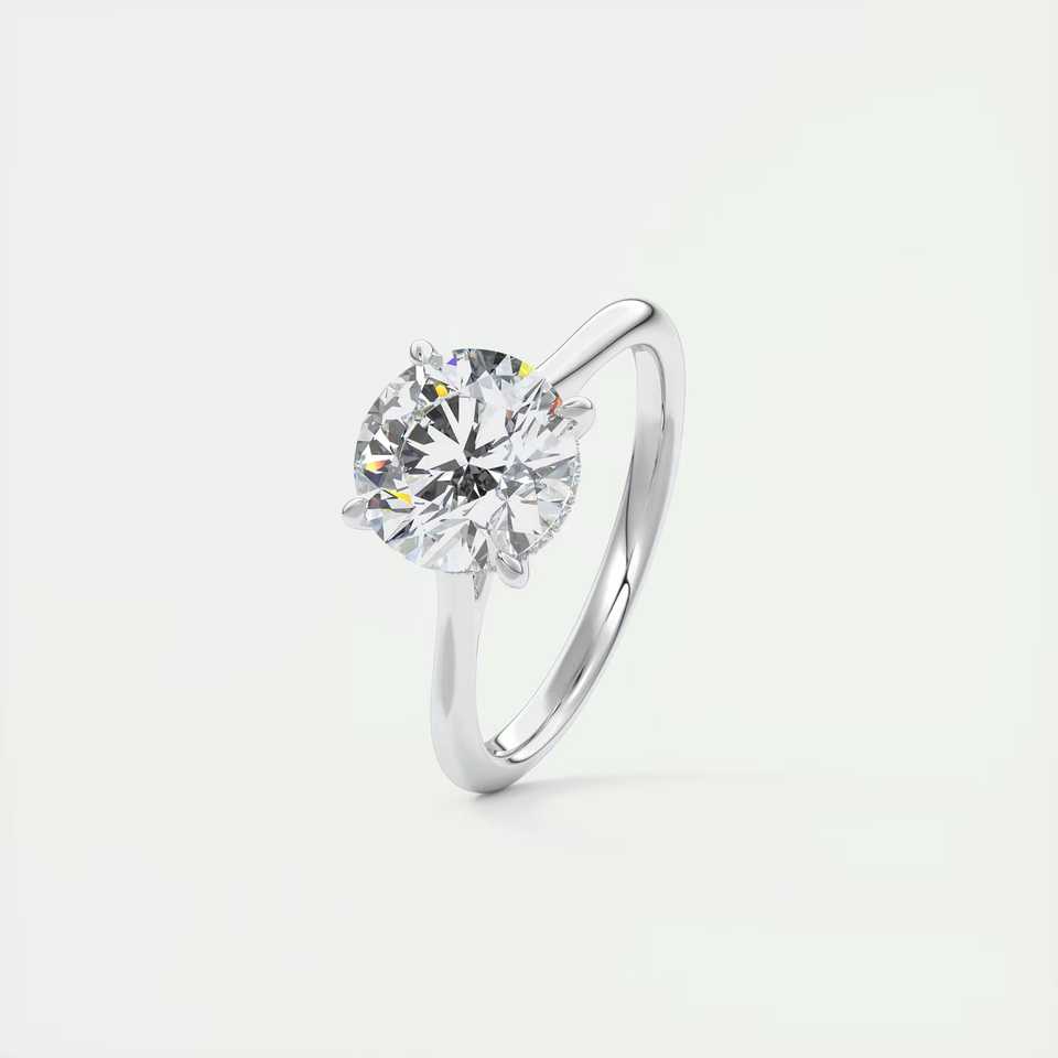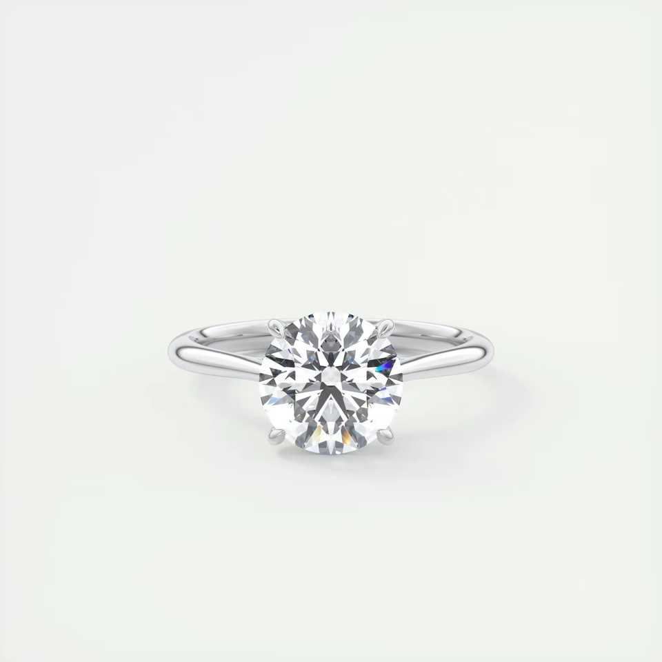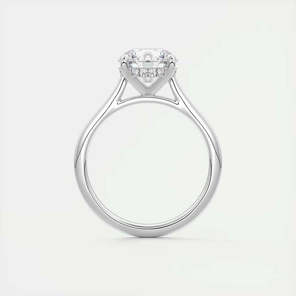 Bague de fiançailles solitaire Cathédrale avec diamant rond de laboratoire de 2,08 carats et halo caché serti en or blanc 14 carats