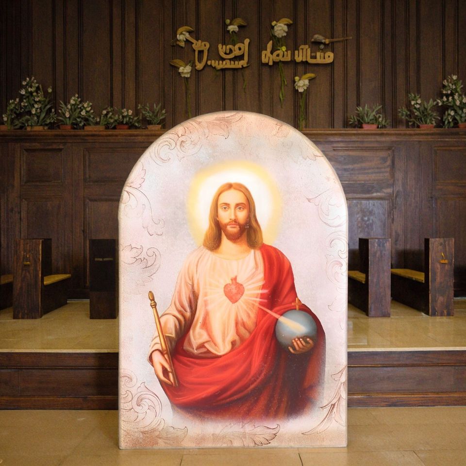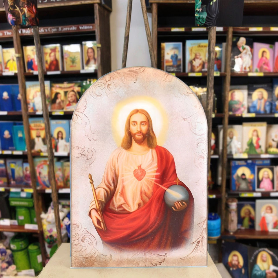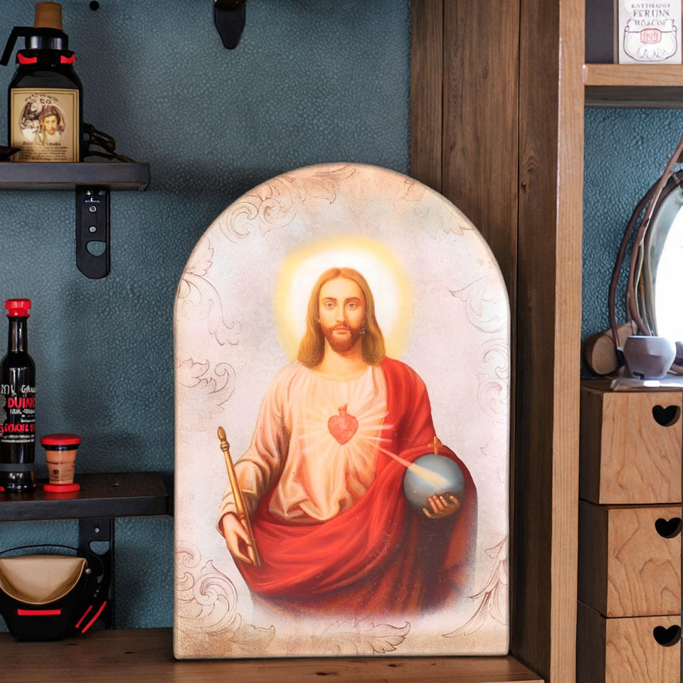 Plaque en MDF arquée religieuse catholique chrétienne, motif Sacré-Cœur de Jésus, pour église, statue, enseigne de table, imprimée UV, réutilisable, Yu Yan
