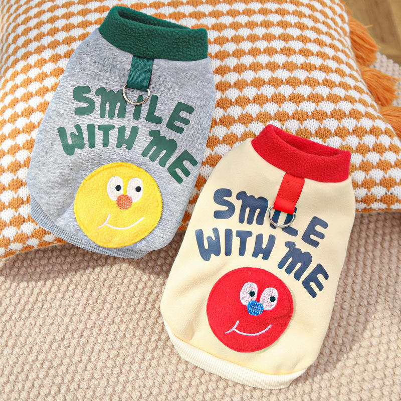 Sweat-shirt sans manches en velours et soie de lait pour chats et chiens, motif texte « Smile with Me » sans poils, automne-hiver
