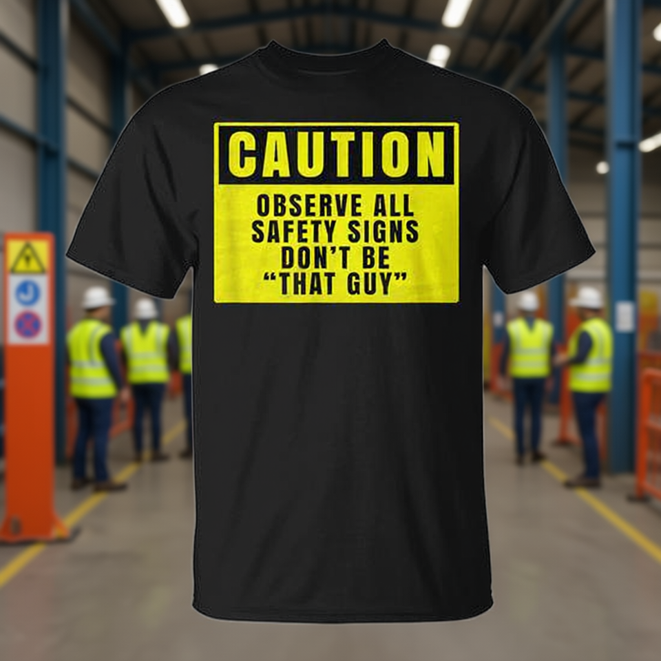 Attention, observez tous les panneaux de sécurité, ne soyez pas de ce type-là, t-shirt noir unisexe pour adulte