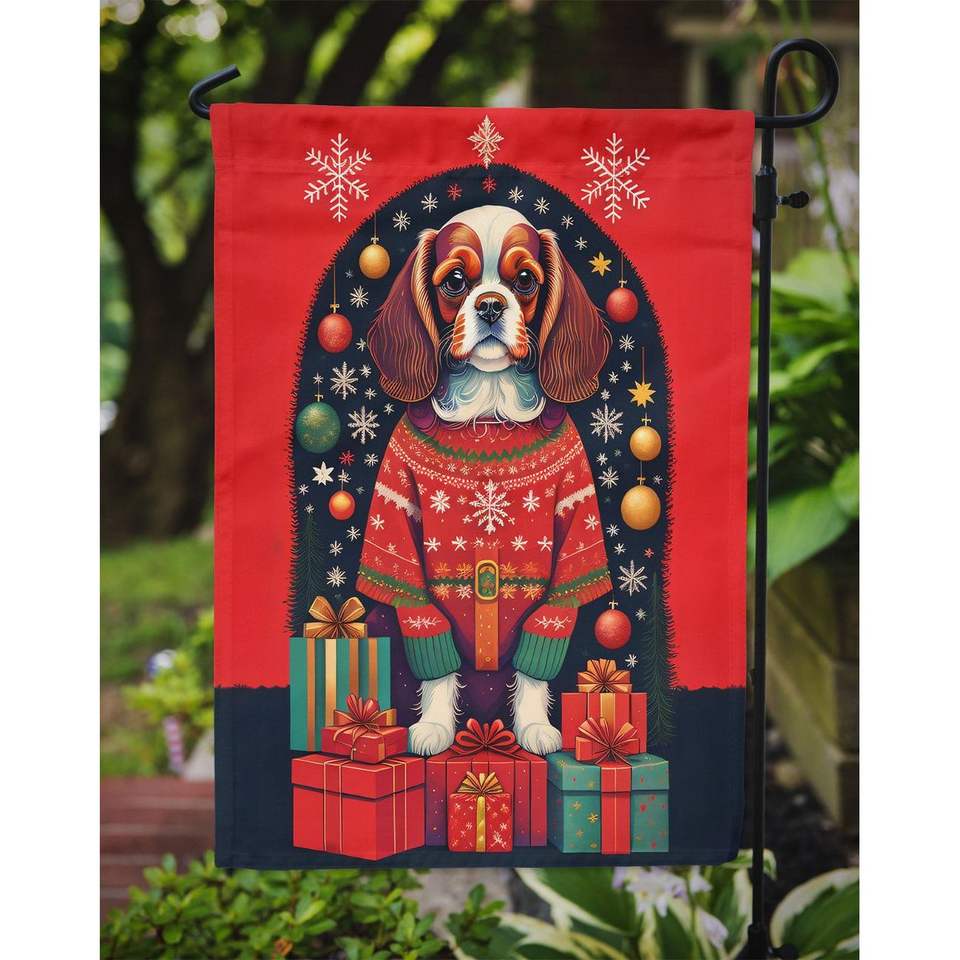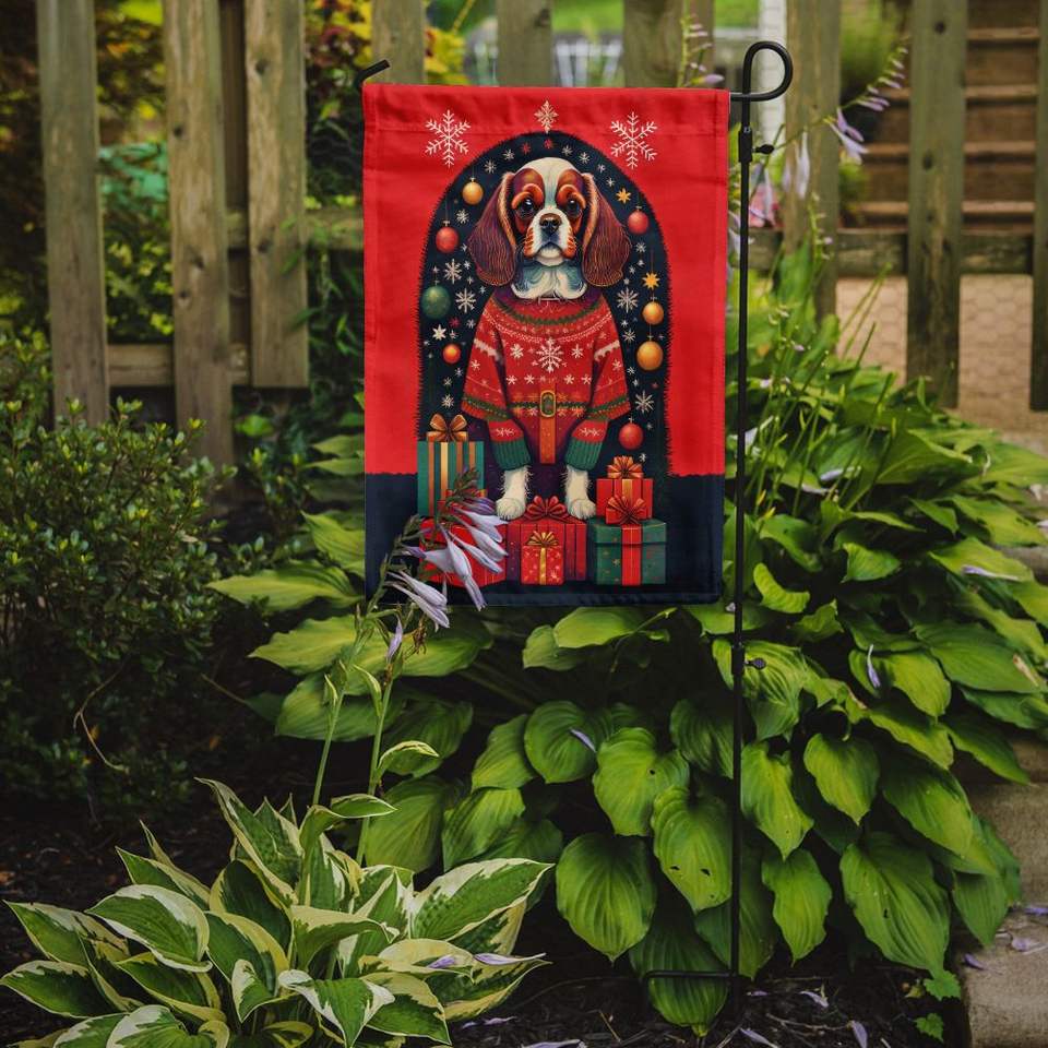 Cavalier Spaniel Holiday Christmas Garden Flag Multicolor Decorative Yard Banner for Patio Artwork Mailbox Flag for Flower Beds
