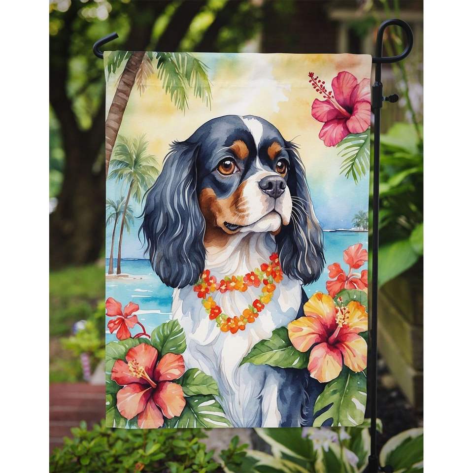 Cavalier Spaniel Luau Garden Flag Multicolor Mailbox Decorative Yard Banner for Patio Artwork Flower Beds Size