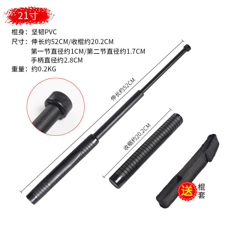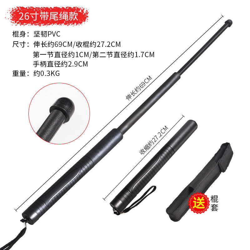 Bâton de protection pour caserne de cavalerie, 18 pouces, verrouillage par torsion, matériau PC, noir, léger, autodéfense pour hommes et femmes, utilisation en voiture