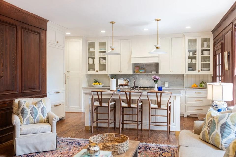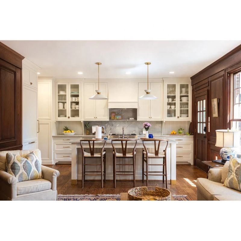 Armoires de cuisine en bois personnalisées Cavio, prix d'usine, portes vitrées, style Shaker, avec option éclairage LED et îlot