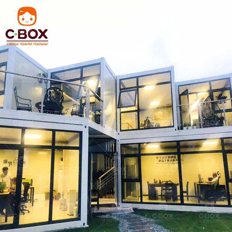 Cbox Upgrade Luxe Préfabriqué Flat Pack Bureau 2 étages Mur rideau en verre Restaurant Hôtel Villa Resort Maison modulaire en conteneur