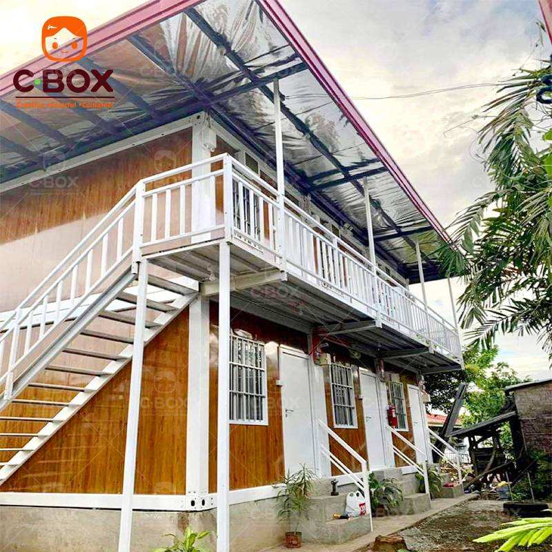 Cbox Vente en gros de logements temporaires préfabriqués mobiles à 2 étages, détachables, camp de travail, maison d'hôtes avec cuisine, maison modulaire en conteneur