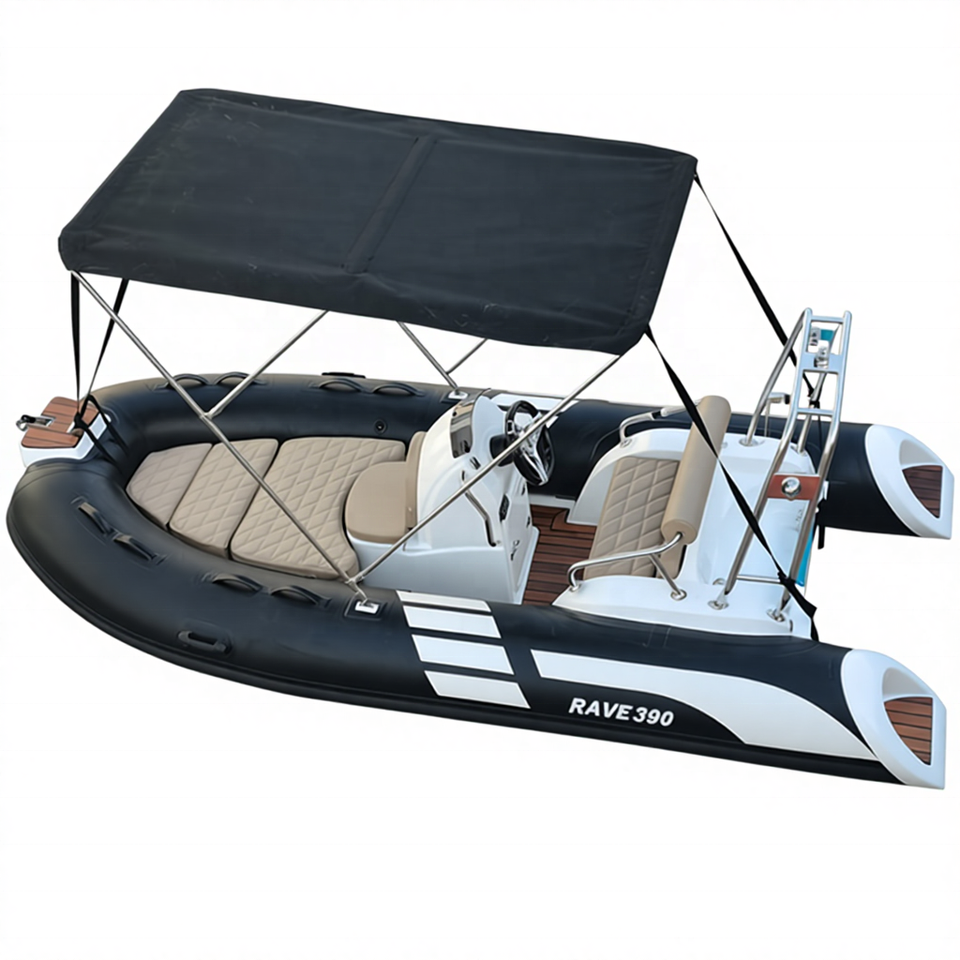 Bateau semi-rigide (RIB) 390 Hypalon Sport Cabin Cruiser, bateau à passagers d'occasion, coque en fibre de verre, plancher en fibre de verre, canot, bateau en fibre de verre, bateau semi-rigide (RIB)