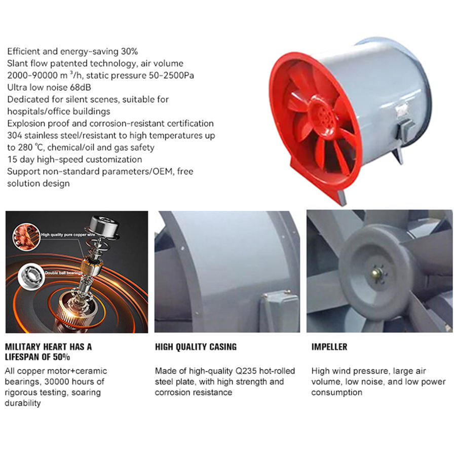 Ventilateur de gaine en ligne intelligent Ce, à flux mixte, 2 vitesses, extracteur de gaine en ligne, ventilateur à flux mixte incliné pour extracteur de fumée