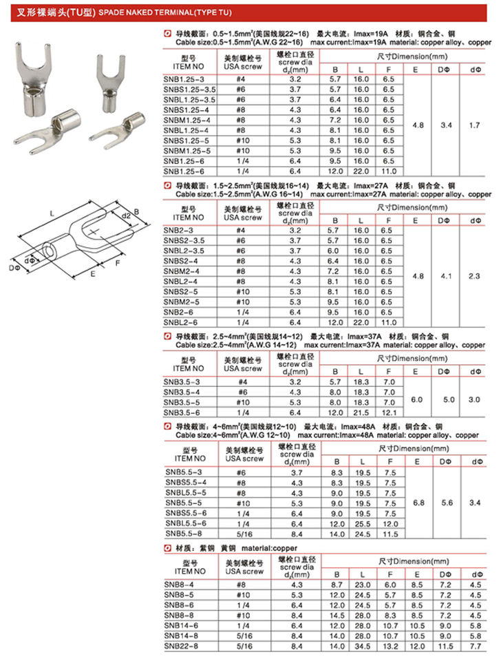 Ce Spade bornier en cuivre nu SNB en cuivre bornier de batterie en cuivre Tube Terminal en cuivre sertissage 1) sac en plastique/carton 2) emballage spécial requis par les clients