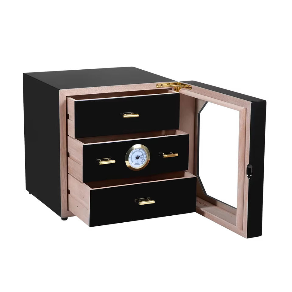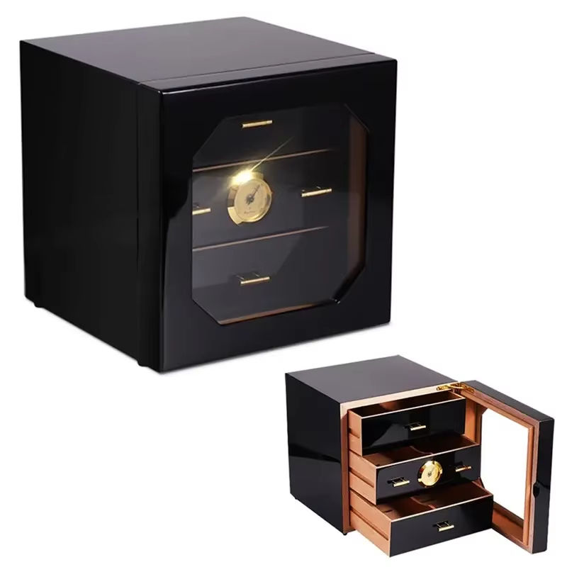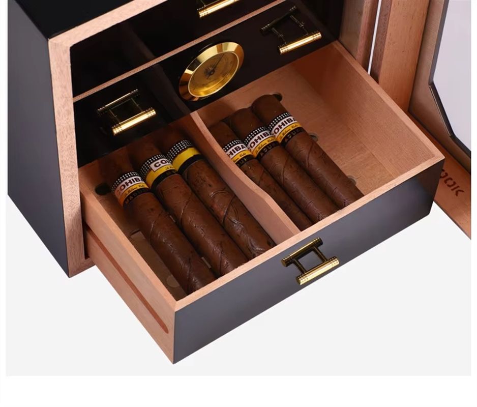 Boîte à cigares de luxe en bois de cèdre avec hygromètre et humidificateur, style armoire élégante et brillante, accessoires laqués