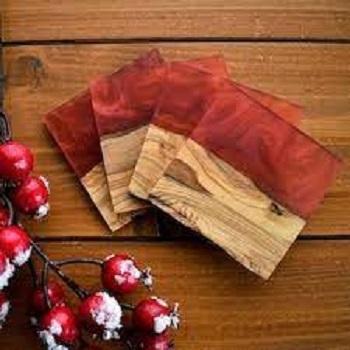 Cedar Wood and Epoxy Resin Coasters Set Wooden Coasters for Table or Bar to Serve Drinks and Coffee
