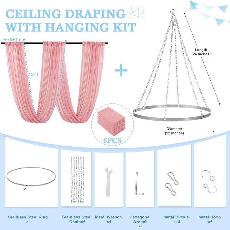 Kit de suspension de draperies de plafond pour mariages, draperies d'arche rose poudré, tissu de drapage en mousseline pour plafonds, pour décorations de réceptions de mariage