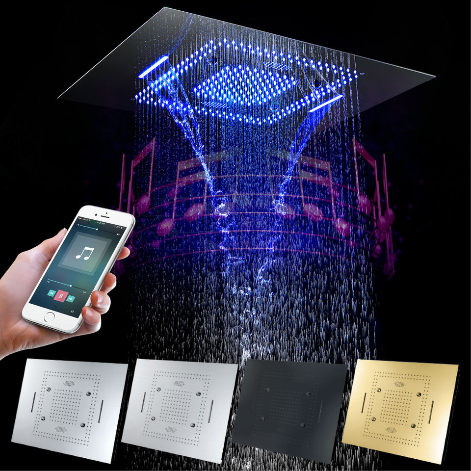 Plafonnier Led encastrable 60x80cm, pommeau de bain, 3 fonctions, Chrome, noir, or, brossé, avec haut-parleur musical, pour la salle de bain