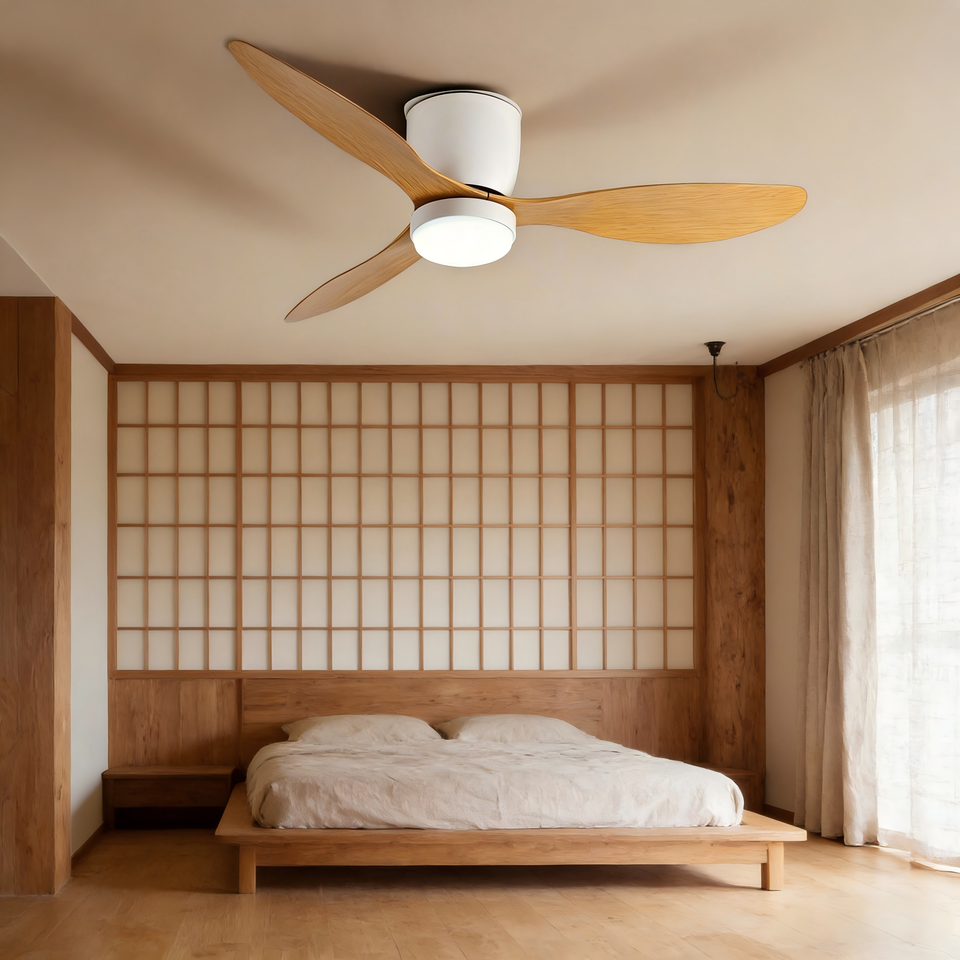 Ventilateurs de plafond avec éclairage 52"CE CB, télécommande, LED à intensité variable, montage encastré, moteur DC silencieux et réversible pour chambre à coucher