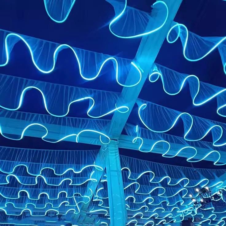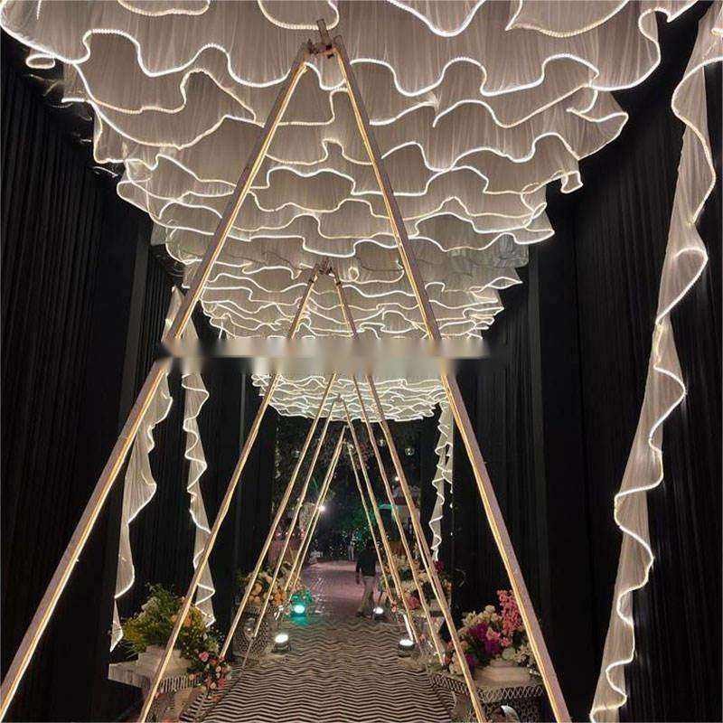 Rideaux de voile lumineux pour plafond, LED, en forme de S, bandes de tissu en filet lisse, décorations de plafond de salle, rideaux en fil lumineux