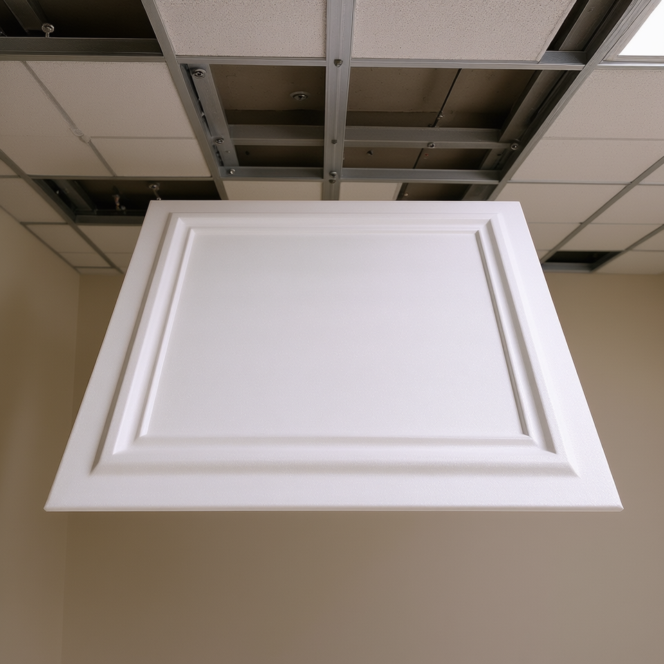 Installation Facile – Lot de 16 Plaques de Plafond Modernes en Polystyrène à Coller, 20 x 20 Pouces, Design Perforé pour la Décoration Intérieure
