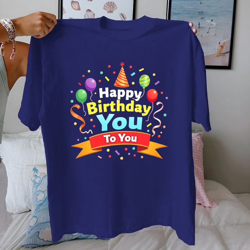 Celebration Happy Birthday You Casual Print Knitted 100% Cotton Women's Short Sleeve T-Shirt Comfort Fit Regular 180g