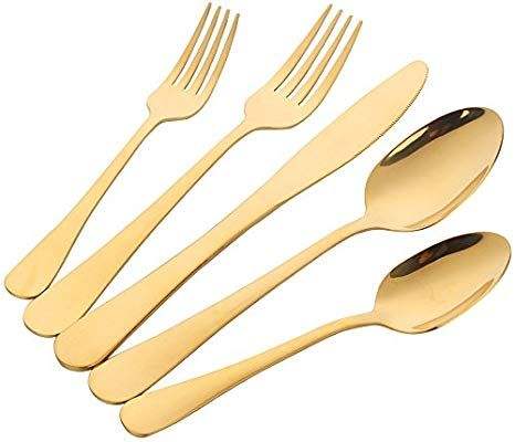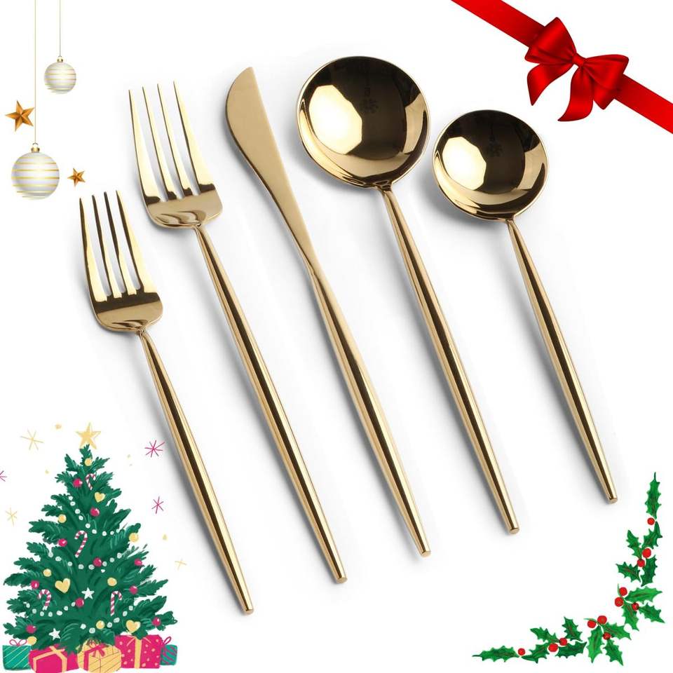 Ensemble de couverts en or Celestial Glow, vaisselle d'inspiration moderne glamour