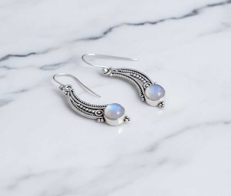 Keyword:Moonstone Stud Earrings Sparkling Moonstone Stones