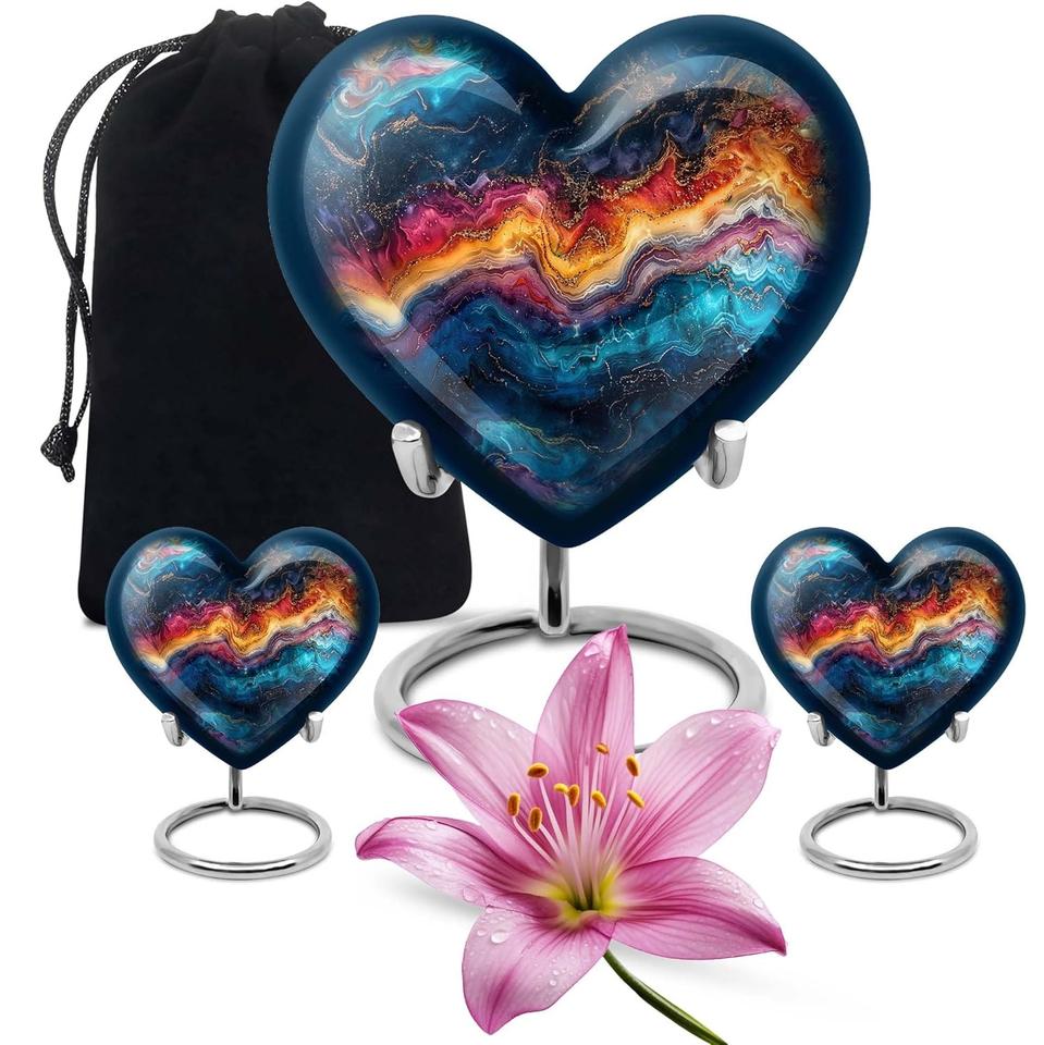 Celestial Nebula Memorial Heart Urn Combo of 3 American Style 10 Inch Urn & Keepsake Urn Set of 2